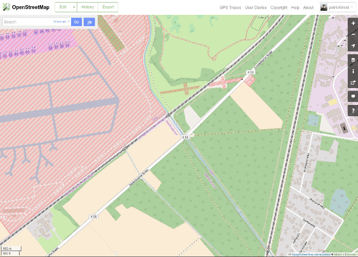 Nun muss man in den Bereich, den man bearbeiten möchte, hineinzoomen. In unserem Fall möchten wir die Relation für den ICE 22 bearbeiten. Der Kartenausschnitt sollte also z.B. um die Gegend bei Celle eingestellt werden, wo der ICE 22 auf seiner Fahrt von Hannover nach Hamburg verkehrt.
